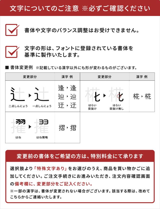 ※特殊文字対応の場合は、別途データ製作費1,500円(税込)が発生致します。