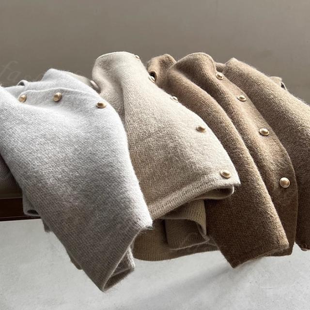 ボタン付きで脱ぎ着が気楽に、こなれ感を演出する。