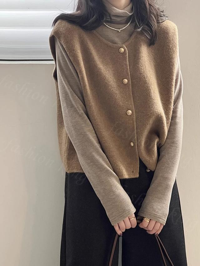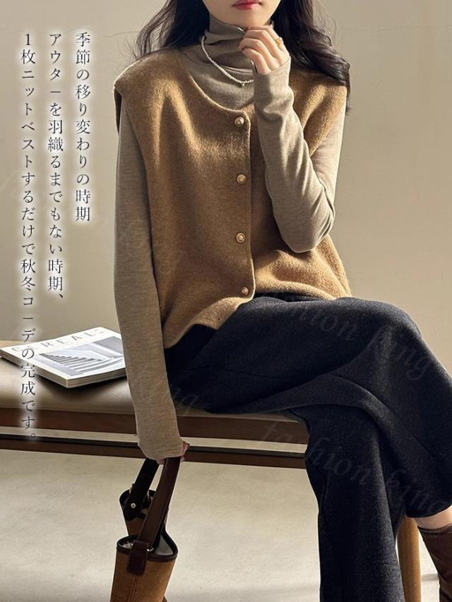ニット ベスト レディース ニットベスト 無地 秋冬 春新作 送料無料 カーディガン ースリーブ トップス セーター 袖なし ニットカーディガン 重ね着 ゆったり シンプル 大人 カジュアル 春 秋 冬 入学式 入園式