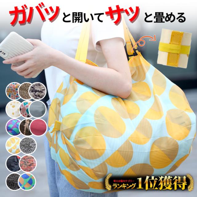 【my best1位受賞】エコバッグ 折りたたみ チャック付 撥水 ボストン 大容量 コンパクト 折り畳み 常備 袋 買い物袋 サブバッグ 旅行 カラフル かわいい おしゃれ 黄色 ミリタリー かっこいい 調節可能 持ち手 畳める シンプル
