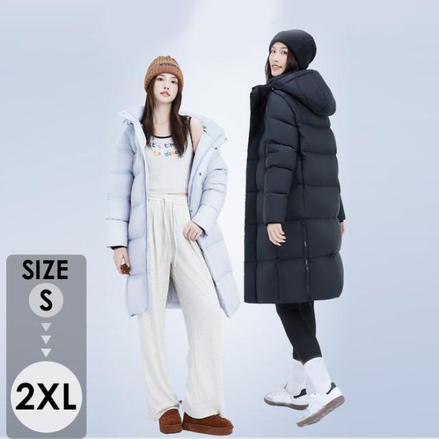 ダウンコート レディース ロング おしゃれ 冬 ダウンジャケット フード付き スタンドカラー 着痩せ 可愛い 通学 通勤 撥水 大きいサイズ 黒ブラック 無地 厚手 防寒 ジップアップ アウター