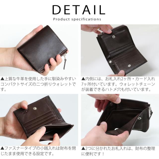 上質な牛革を使用した手に馴染みやすいコンパクトサイズの二つ折りウォレットです。