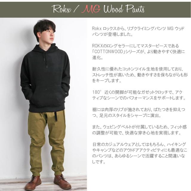 エムジーウッドパンツ ROKX ロックス リブクライミングパンツ MG ウッドパンツ ( rxms191020 ) ストレッチ 8分丈 クロップドパンツ イージーパンツ アンクル ロングパンツ メンズ ベルト付き おしゃれ ガゼットクロッチ スポーツ アウトドア アーベン 普段使い 実用的