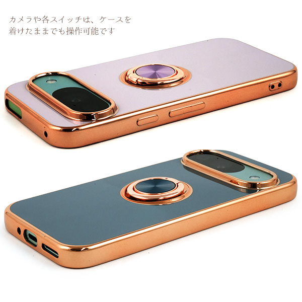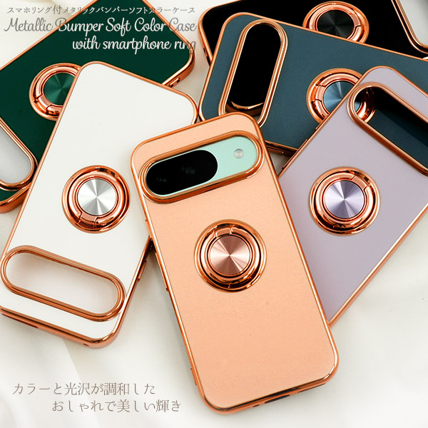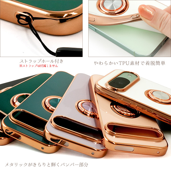 スマホケース Google Pixel9 Google Pixe9Pro用 スマホリング付き ソフトケース メタリックバンパー 装着簡単 おしゃれ 可愛い 携帯ケース お洒落 韓国風 背面保護 メタリックカラー スマートフォンケース スマホカバー シンプル 上品 グーグルスマホ 大人っぽい