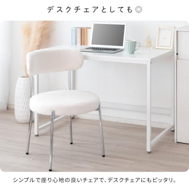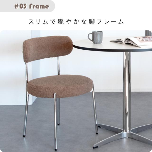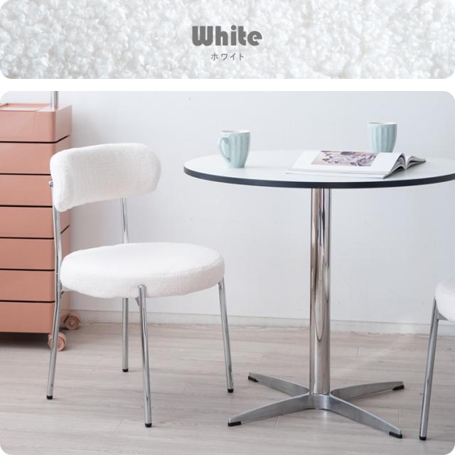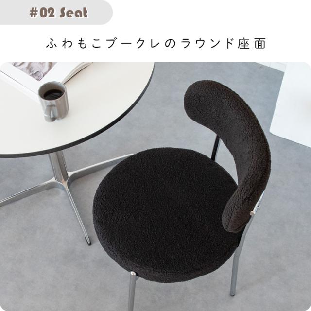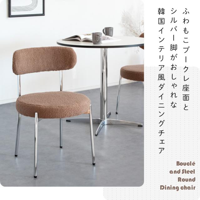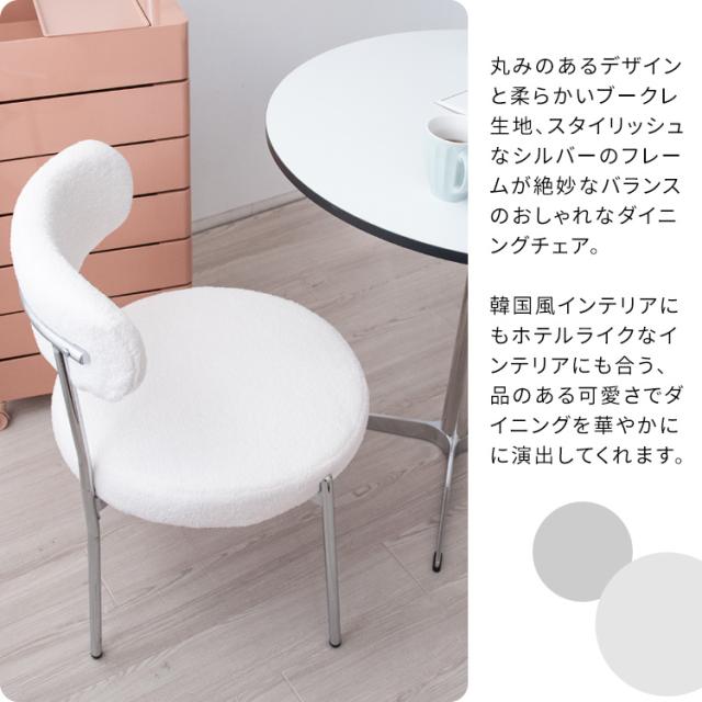 ふわもこなブークレ生地とシルバーフレームの丸くて可愛いダイニングチェア。