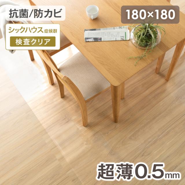 超薄0.5mm ダイニングマット 透明マット 撥水 クリア 抗菌 防カビ シックハウス対策済み 床暖房対応 180×180cm ダイニング マット クリアマット フロアマット キッチンマット 透明 下