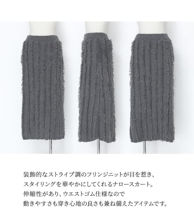 最大1000円オフ26日10時迄 『フリンジニットナロースカート』【メール便不可】【40】[スカート レディース ボトムス ロング丈 ナロースカート ニットスカート ストライプ調 フリンジ ニット ウエストゴム 伸縮性]