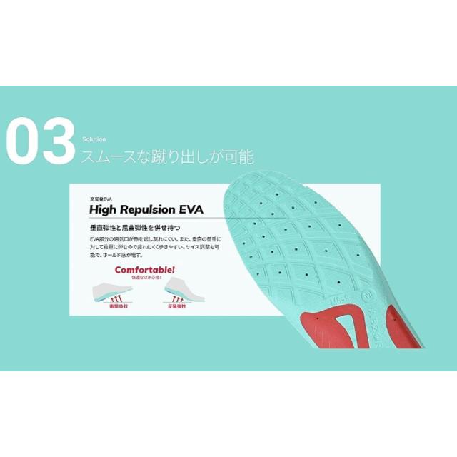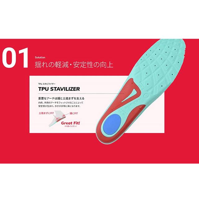 【商品特徴】 反発性に優れたEVA素材、衝撃吸収に優れた踵のクッションに加え、中足部から踵部への保護性を高めたランニングインソール。高い防滑性を発揮するナノフロントをフルレングスで表面に使用し滑りにくさを向上。高性能インソールで、スポーツシーンのみならずライフスタイルシューズやウォーキングシューズ用としてもご利用頂けるアイテム。