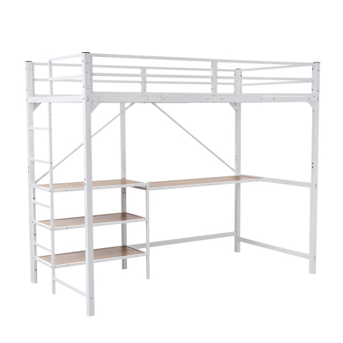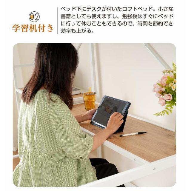 【学習机付き】ベッド下にデスクが付いたロフトベッド。小さな書斎としても使えますし、勉強後はすぐにベッドに行って休むこともできるので、時間を節約でき効率も上がる。