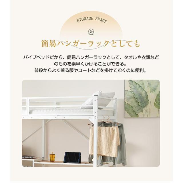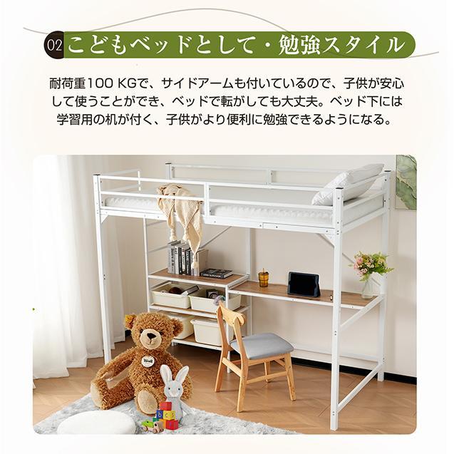 「クーポン配布中」ロフトベッド パイプベッド デスク付き システムベット ラック棚付き シングルベッド ロータイプベッド 子供ベッド 子供部屋 二段ベッド ロータイプ 収納棚付き スチール 北欧風 おしゃれ 子供部屋