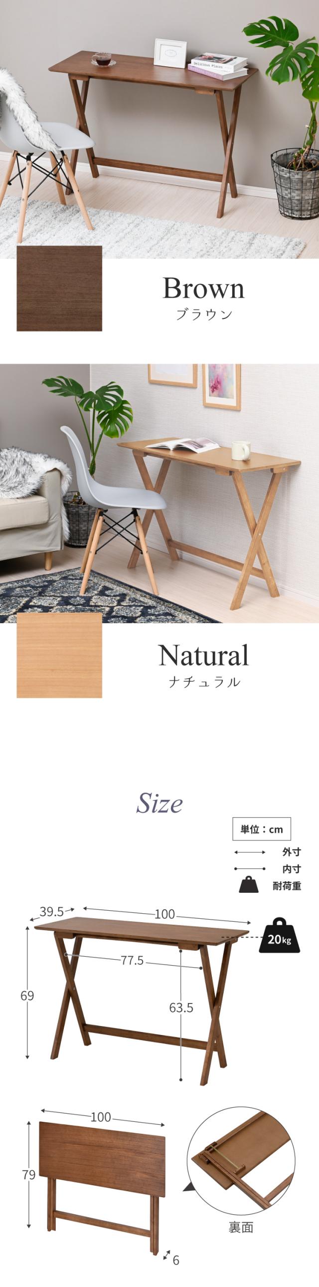 ・本体外寸:幅約100 ×奥行約39.5×高さ約69cm ・天板下内寸:幅約77.5×天板下から床までの高さ約63.5cm ・本体折り畳み時:幅約100×厚み約6×高さ約79cm |