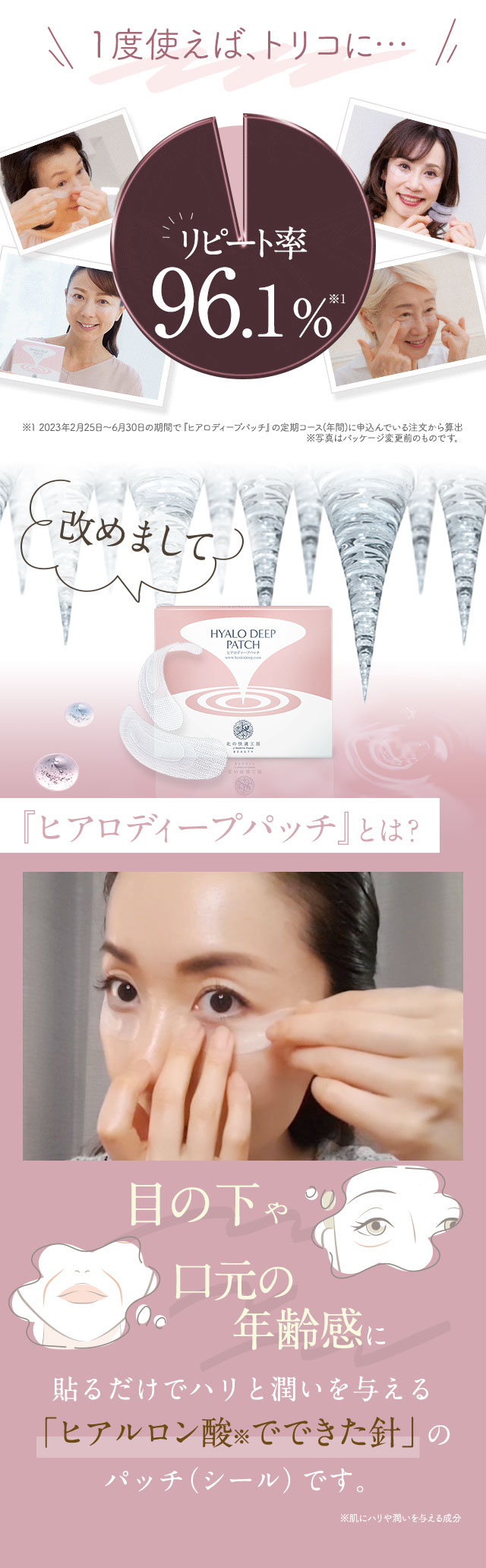【公式】北の快適工房 ヒアロディープパッチ 売上世界一 マイクロニードルパッチ 目元 ほうれい線 ヒアルロン酸 パッチ ニードルパッチ マイクロニードル 目の下 4回分 針 貼るヒアルロン酸 刺す