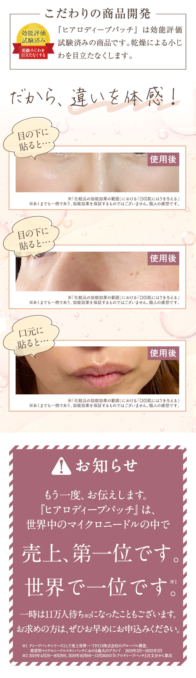 シリーズ人気No.1の ヒアルロン酸 パッチ !目元 のお悩みに是非お試しください