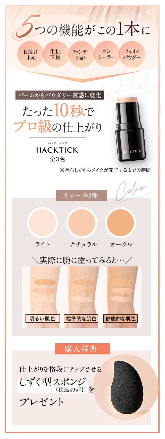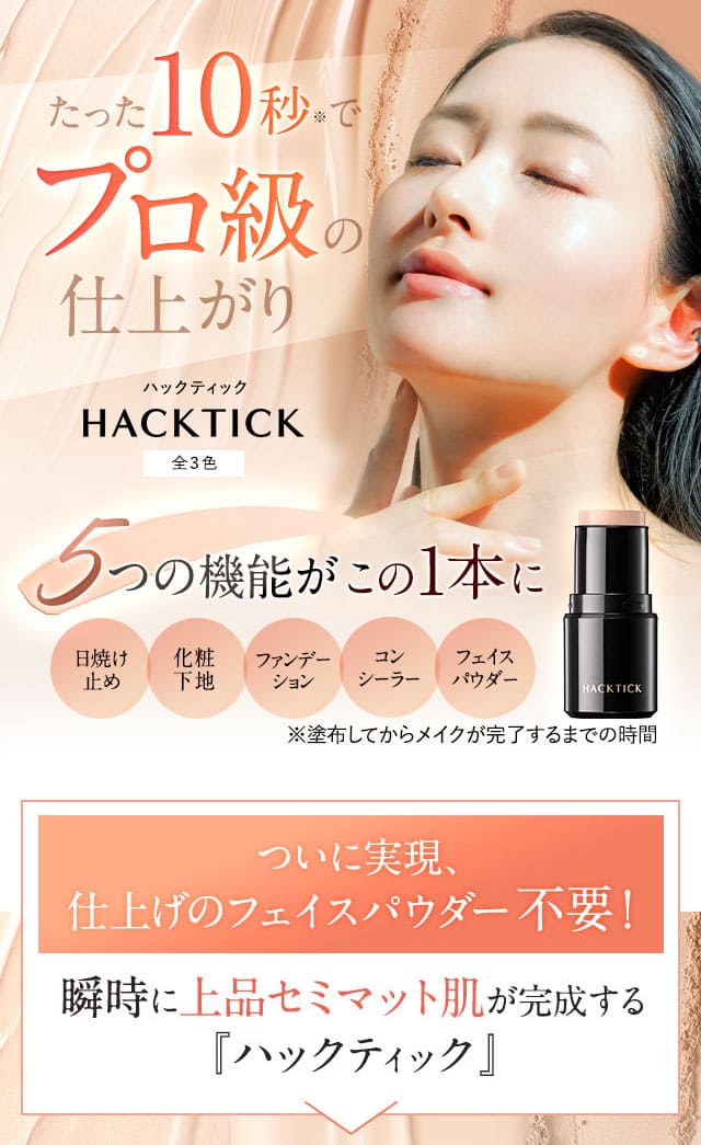 すっぴんからパウダーまで1本で完結!北の快適工房『ハックティック』5.6g スティック ファンデーション 3色(ライト ナチュラル オークル)専用スポンジ(495円)付き