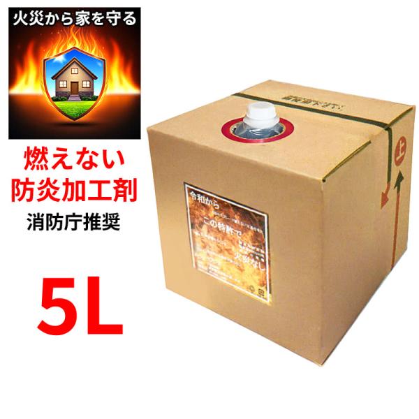 燃えない防炎加工剤 5L 火災を防ぐ 木材 布 紙 液体タイプ 無色無臭 消防庁推奨 防災 特許第6557375号 株式会社 建材用防炎剤