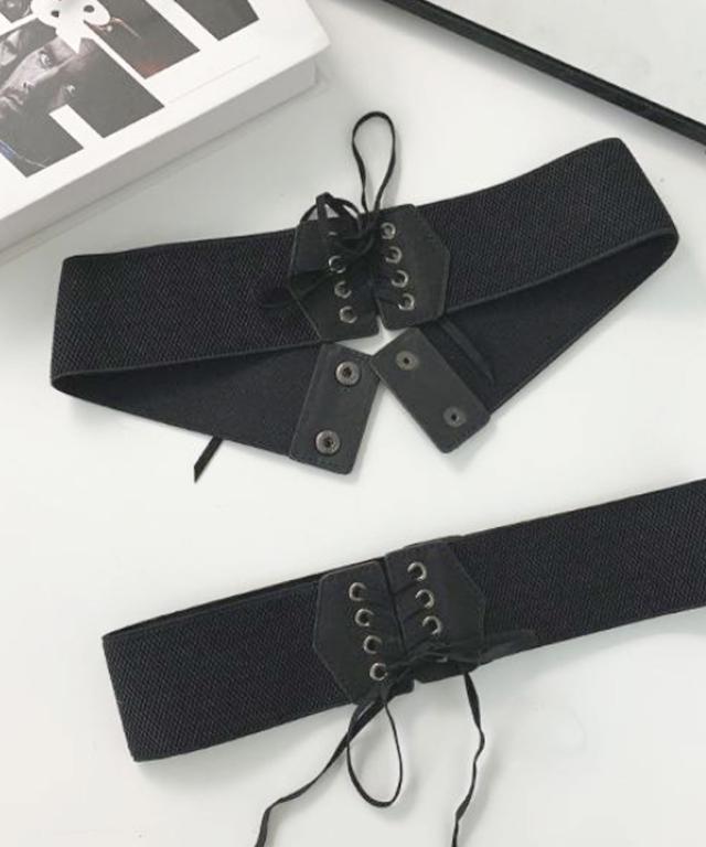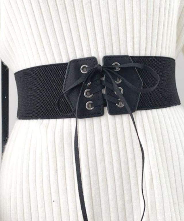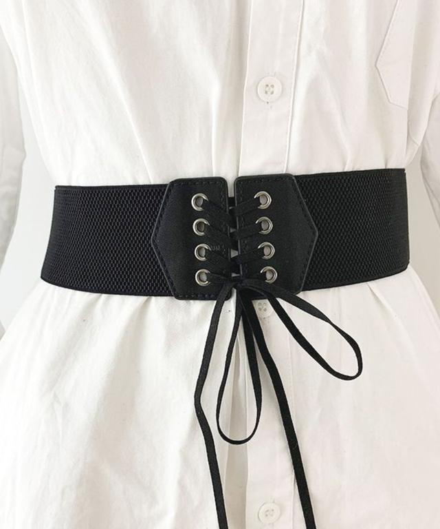 オールブラックで揃えたシックな色合いに、コルセットスタイルが上品なデザインベルト♪