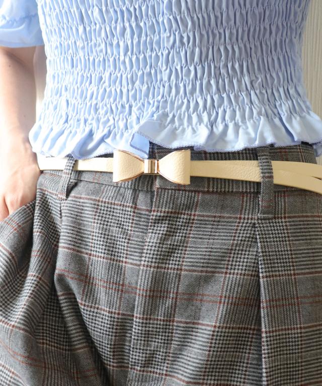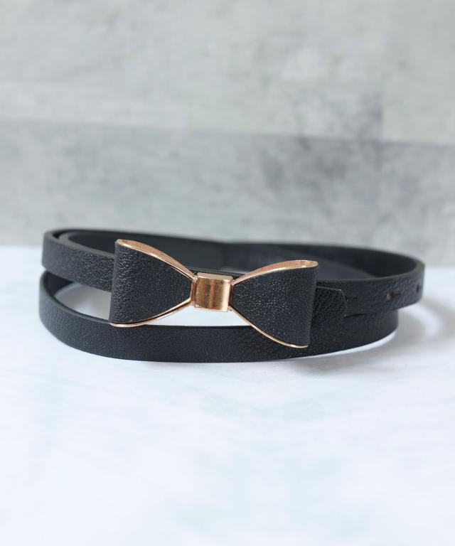 華奢見えする細めのベルト幅に、アクセントになるリボンバックルをあしらったキュートなデザインベルト♪
