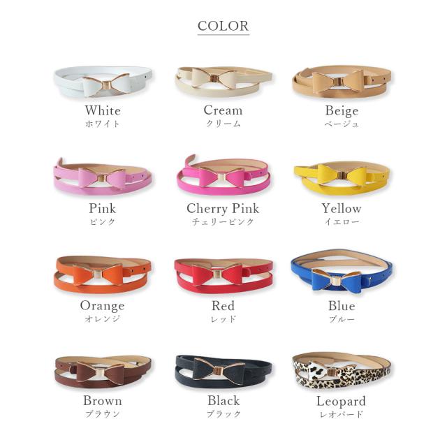 リボンモチーフ細めレディースベルト。