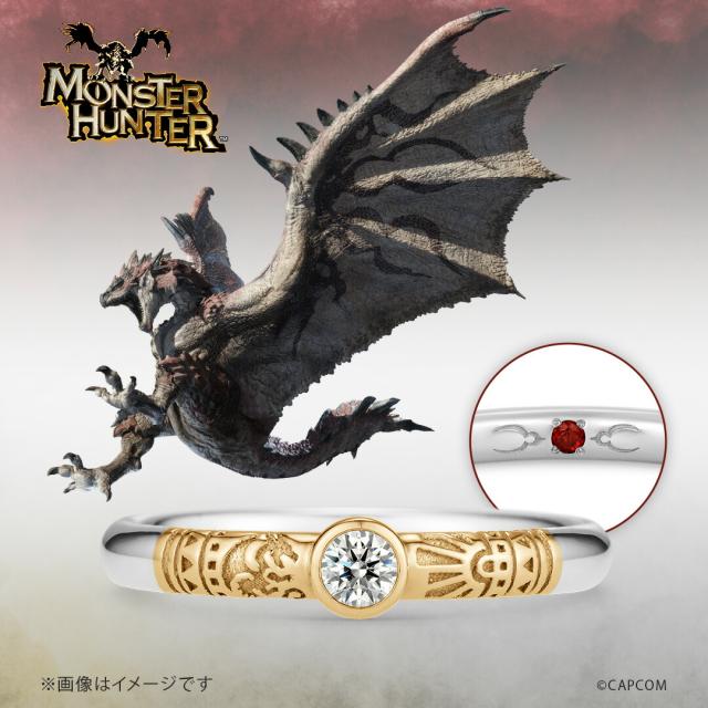 モンスターハンター 指輪 リング ハンターの指輪 エンゲージリング ダイヤモンド付き リオレウス プラチナ×K18イエローゴールド レディース 女性 婚約指輪 エンゲージリング アニバーサリー ブライダルリング ジュエリー ユートレジャー U-TREASURE