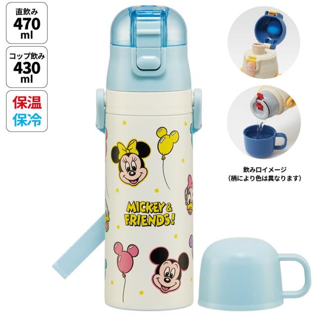 水筒 キッズ 直飲み ワンタッチ ステンレス 保冷 軽い キャラクター 2WAY コップ skater スケーター SKDC4 風船 ミッキーマウス ミッキー Mickey 男の子 女の子【紐付き 幼稚園 子供用水筒 ショルダー ひも 子ども ワンプッシュ】