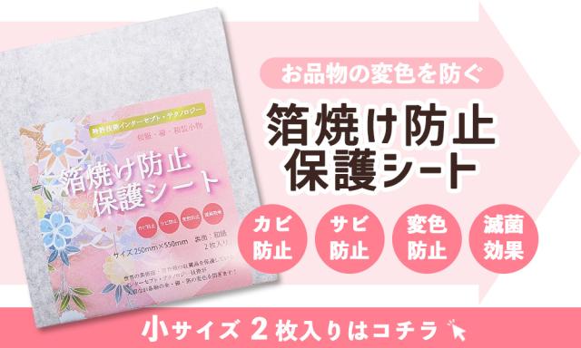 大切なお着物や帯のカビや変色からしっかり守る「箔焼け防止保護シート」でございます。