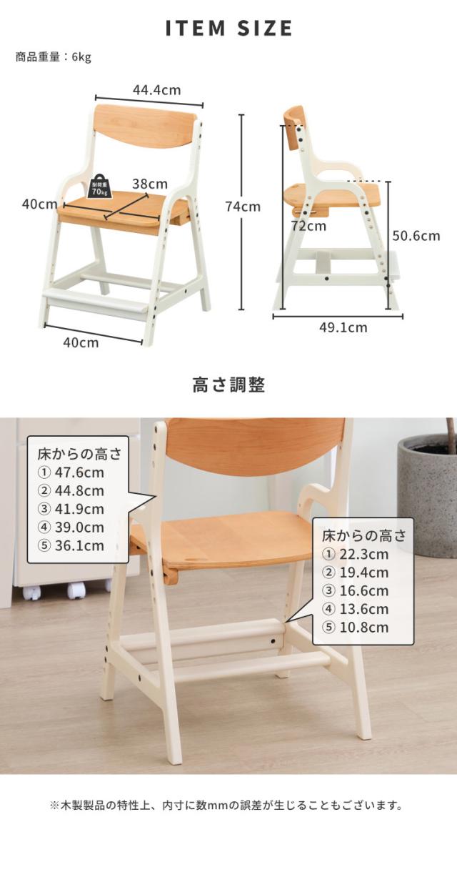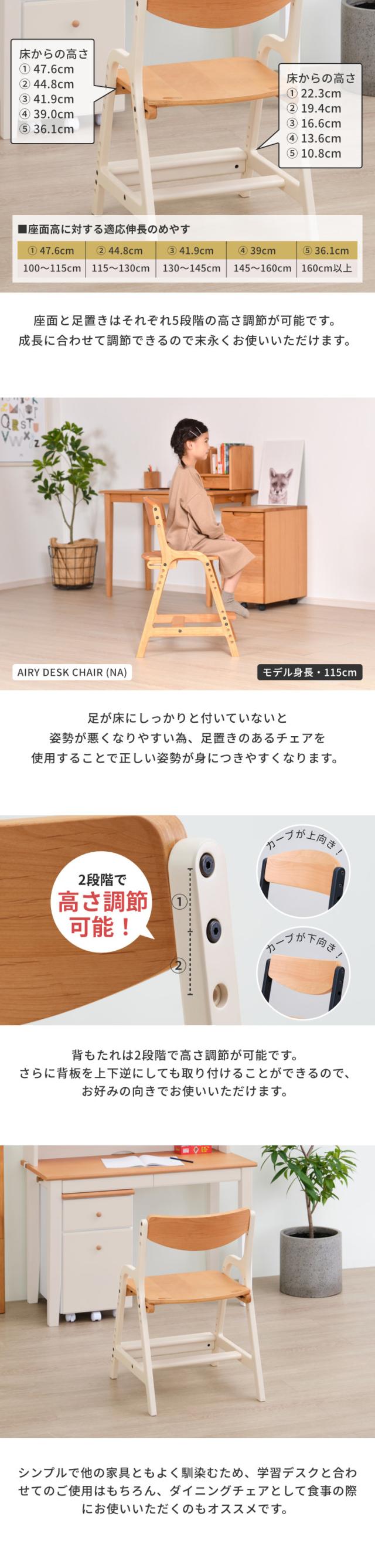 学習椅子 ナチュラル 木製 姿勢 子供 キッズチェア ハイチェア 学習チェア ダイニングチェア 椅子 高さ調整 シンプル コンパクト 組立て 板座 足置き ISSEIKI 小学生 女の子 男の子 ISSEIKI KIDS AIRY-4 DESK CHAIR (NA+WH)