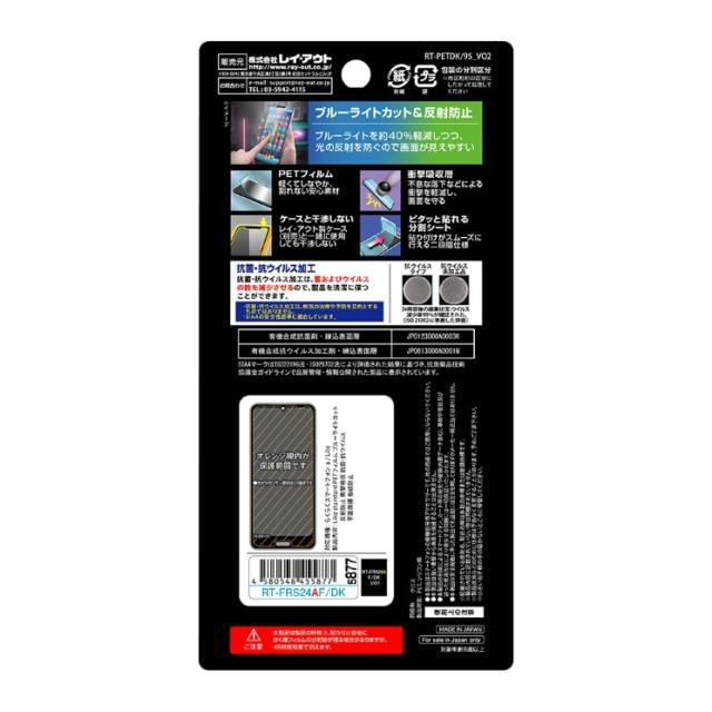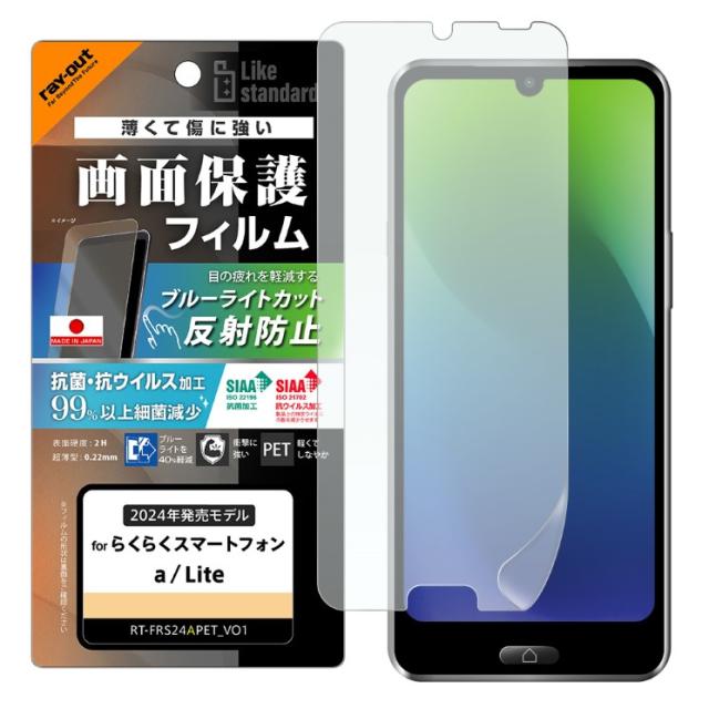 らくらくスマートフォンa フィルム 衝撃吸収 ブルーライトカット 反射防止 アンチグレア マット 抗菌 抗ウィルス ワイモバイル A501FC Ymobile PET フィルム 画面 保護 RT-FRS24AF-DK