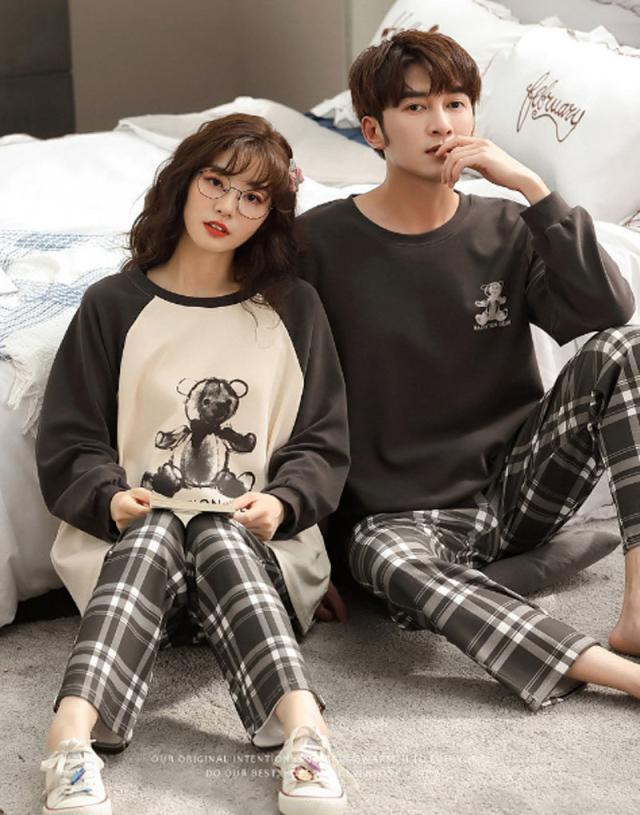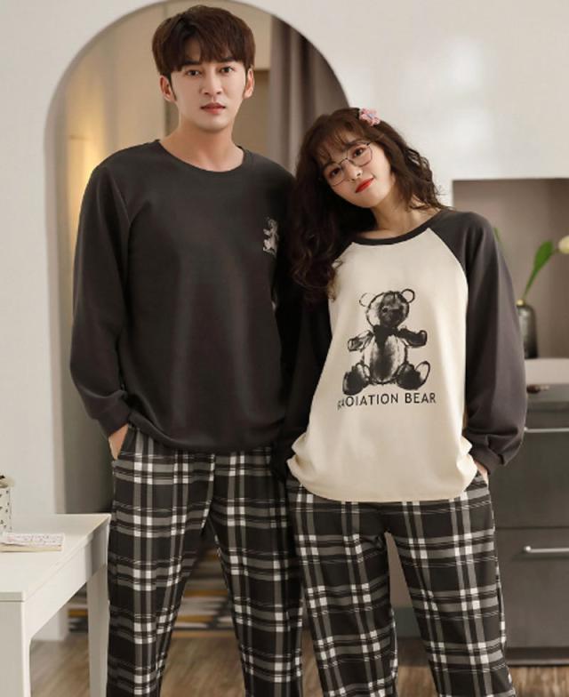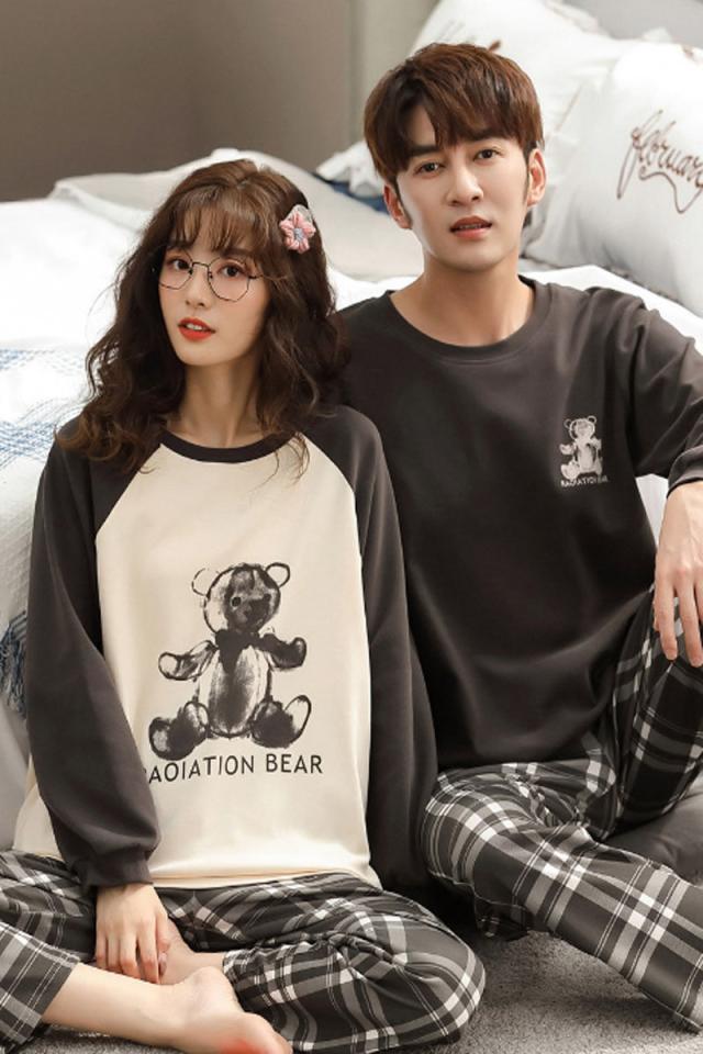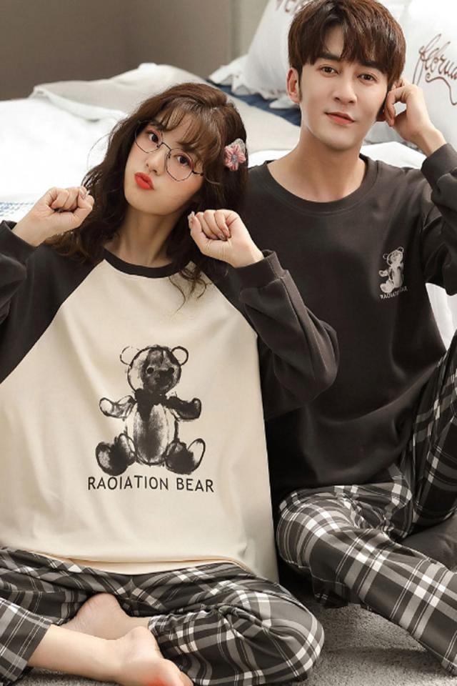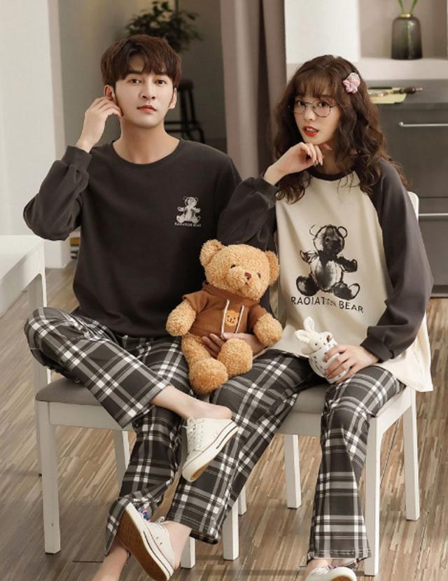 【ペア価格】 ペアルック パジャマ レディース メンズ 春秋 長袖 上下セット パンツセット カップル 寝巻き 寝間着 お揃い スウェット プレゼント ハネムーン ファッション プレゼント 可愛いクマ