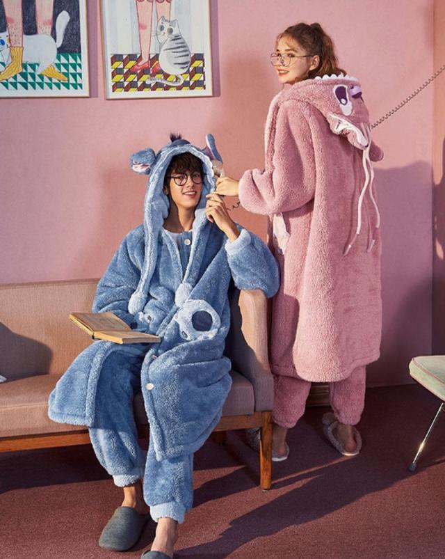 ペアルックパジャマ 上下セット カップルペアルック ルームウェア ペアパジャマ スティッチ パジャマお揃い スウェット 寝巻き 可愛い 裏起毛 暖かい Stitchi柄