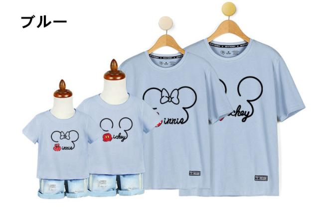 T-shirt Tシャツ ディズニー親子ペア ペアルック 半袖 ミッキー ミニー 半袖 夏 夫婦 ご家族揃いお誕生日
