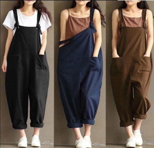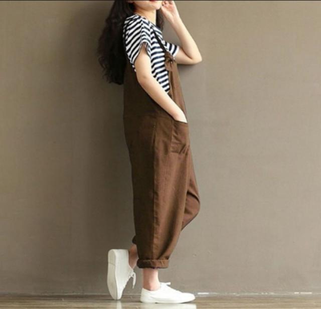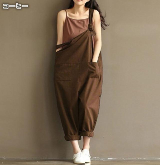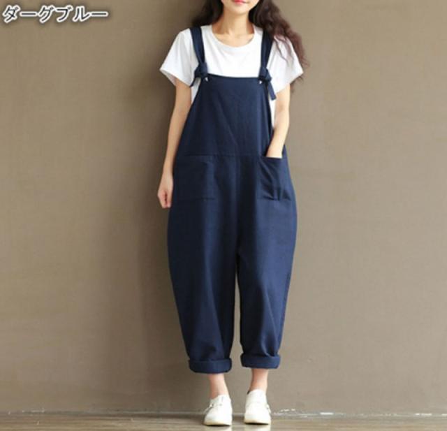 【送料無料】3COLORS オールインワン サルエル パンツ バルーン シルエット サロペット オーバーオール 大きいサイズ 春物 体調カバー