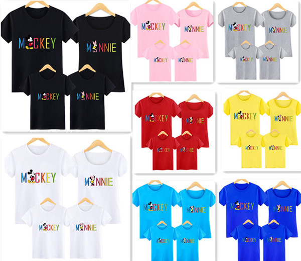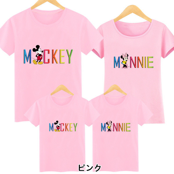 2016新作 8色 T-shirt Tシャツ ディズニー親子ペア ペアルックトップス 半袖 ミッキー ミニー 半袖 夏 夫婦 ご家族揃いお誕生日 ママパパ 子供 プレゼント 旅行 キッズ