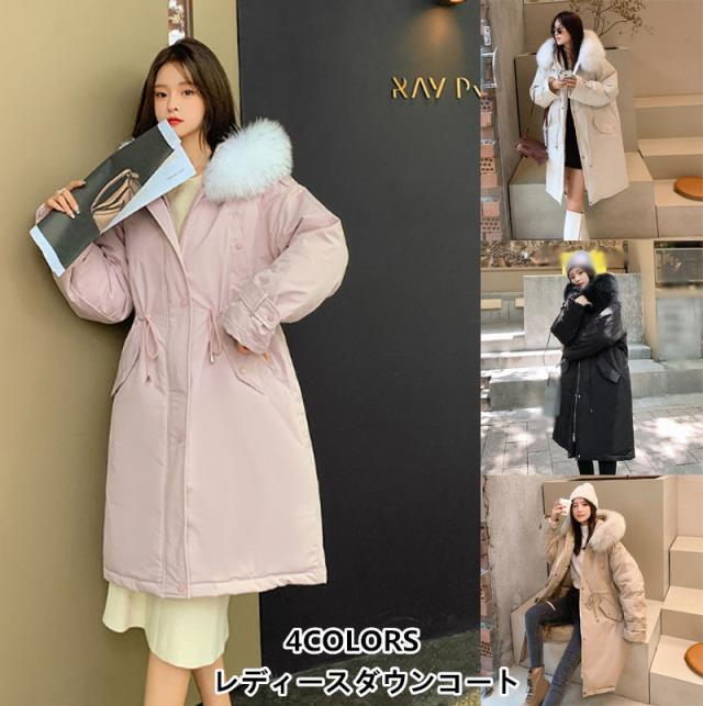 4colors レディースダウンコート 女性 コート レディース 中綿 コート フワフワコート 防寒 フォックスファー フード付き 上着 秋 冬 無地 防風 防寒 アウター コート カジュアル