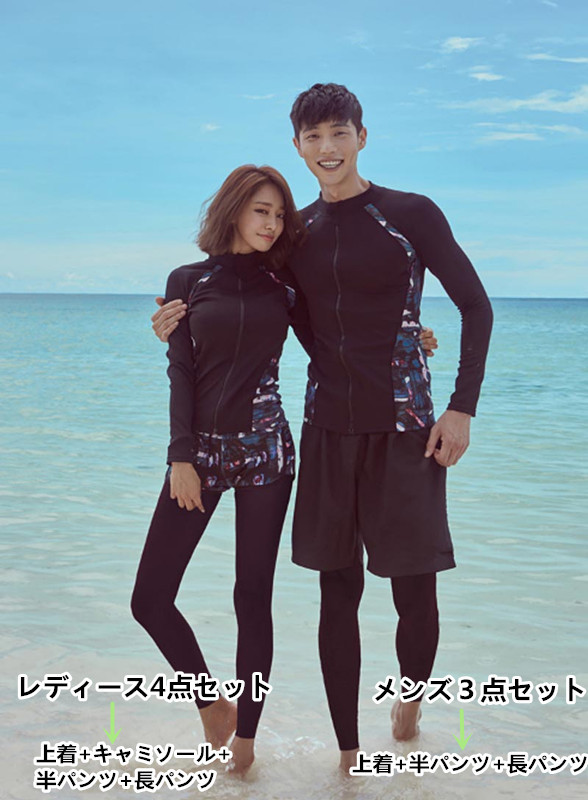 ペアルック カップル 水着スイムウエア フィットネス水着 ご夫婦.カップルお揃い ラッシュガード 紫外線対策 日焼け防止