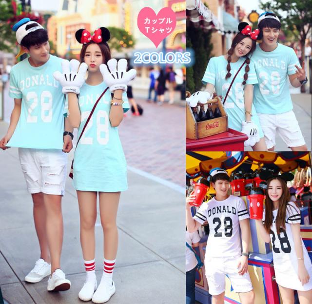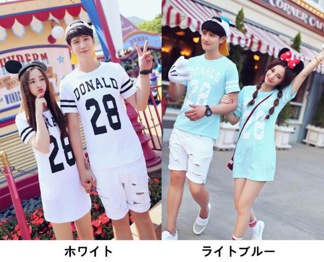 2COLORS T-shirt disney ディズニー ペアルック カップル Tシャツ トップス Tシャツワンピース ドナルドダック半袖 夏 夫婦 お揃い 旅行 プレゼント ドナルドダック柄 2026新作