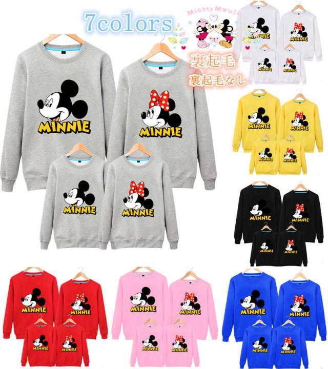 トレーナー トップス ディズニー親子ペア ペアルックパーカー 長袖 ミッキー柄 秋冬 夫婦 裏起毛/裏起毛なし旅行 プレゼント Mickey柄 パパ ママ 子供 お誕生日