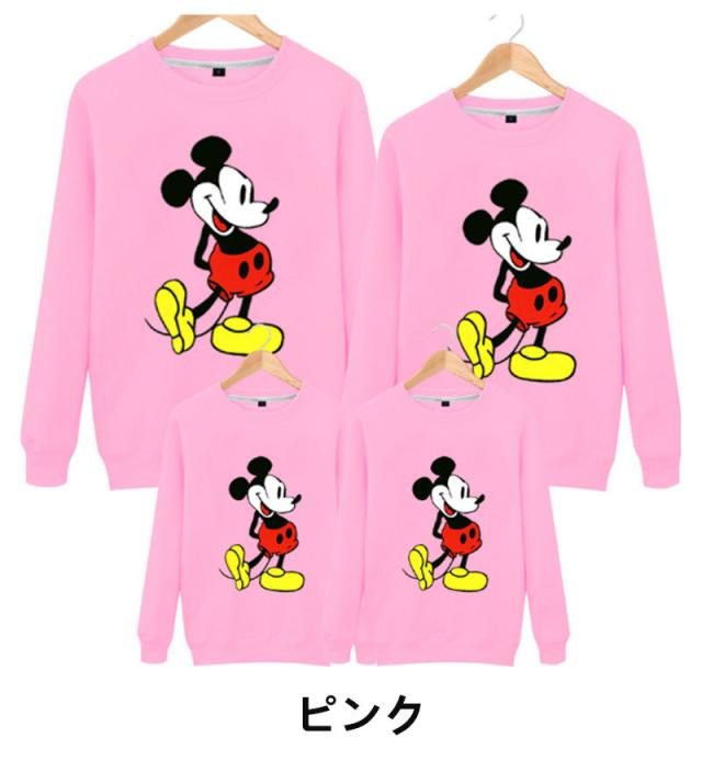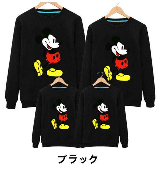 トレーナー トップス ディズニー親子ペア ペアルック パーカー長袖 ミッキー柄 秋冬 夫婦 帽子付き 裏起毛/裏起毛なし旅行 プレゼント Mickey柄 男女兼用 お誕生日