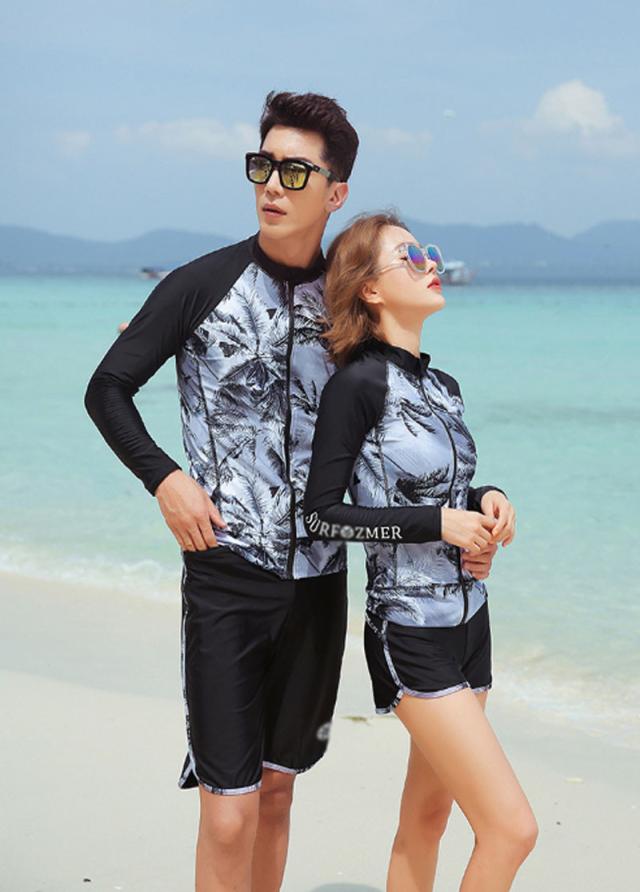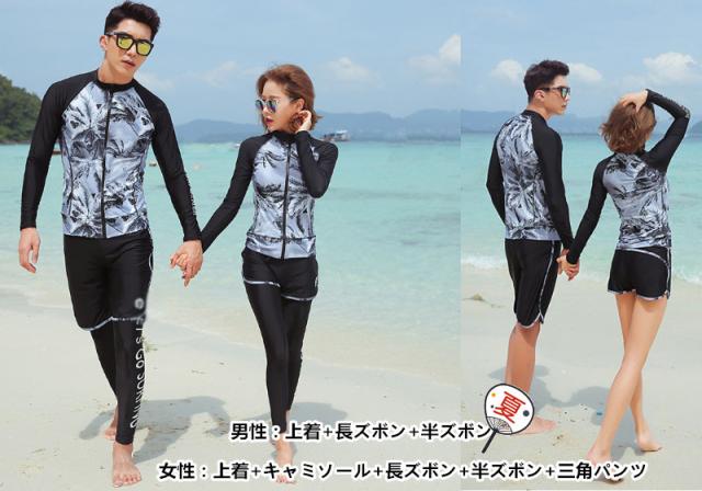 【ペア販売】ペアルック カップル 水着スイムウエア フィットネス水着 ご夫婦.カップルお揃い ラッシュガード 紫外線対策 日焼け防止