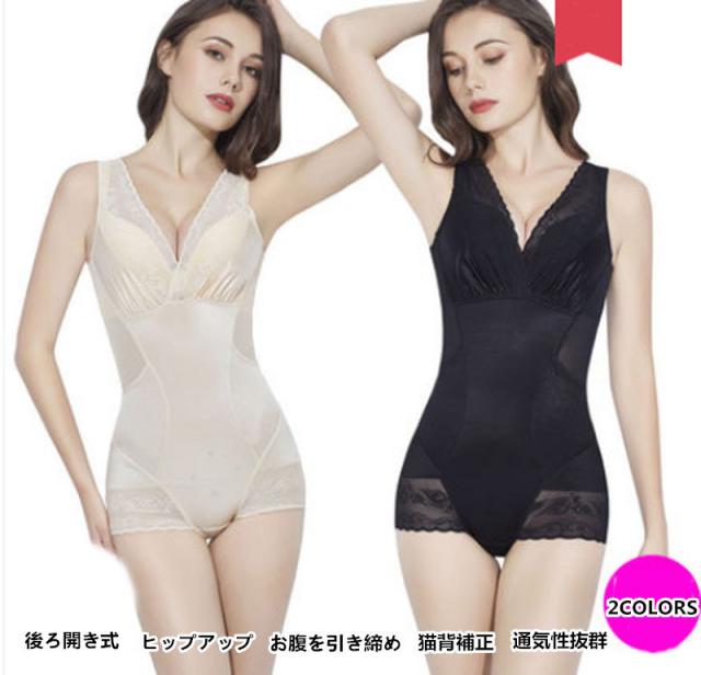 「2点セット販売」ボディスーツ 補正下着 お腹引き締め バストアップ ヒップアップ ボディーシェイパー 花柄 薄手 産後ケア 後ろ開き 全身 着圧 ウエスト レース