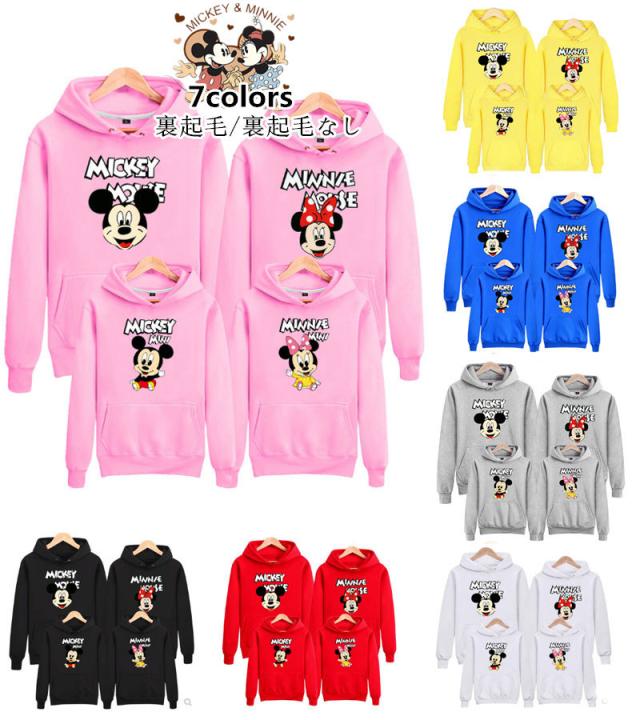 7COLORS パーカー トップス ディズニー親子ペア ペアルック 長袖 ミッキー柄 秋冬 夫婦 帽子付き 裏起毛/裏起毛なし旅行 プレゼント Mickey柄 パパ ママ 子供 帽子付き お誕生日