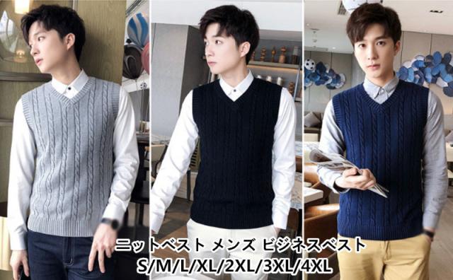3colors ニットベスト メンズ Vネック ニットベスト 大きいサイズ ビジネスベスト オフィス カジュアル メンズトップス カットソー かっこいい