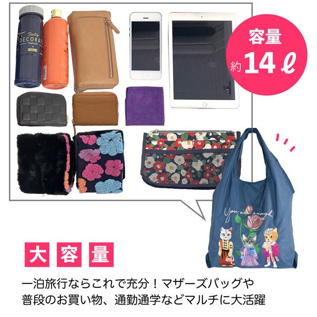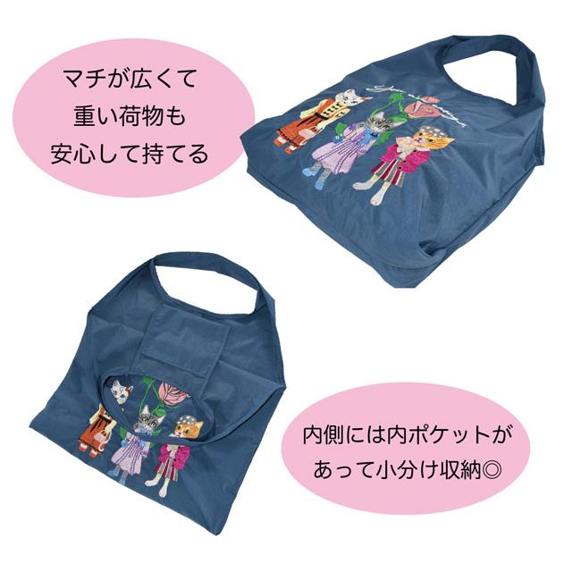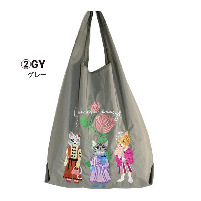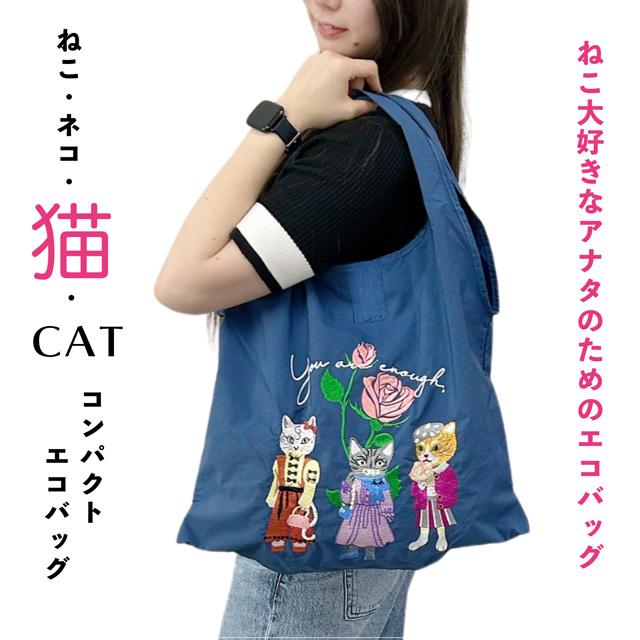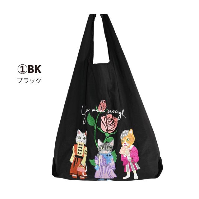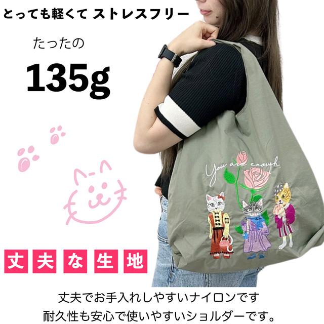 エコバッグ 猫柄 刺しゅう 軽量 肩掛け 折りたたみ コンパクト マチあり 持ち運び 大容量 ショルダーバッグ サブバッグ 買い物 コンビニ レディース かわいい おしゃれ ギフト プレゼント