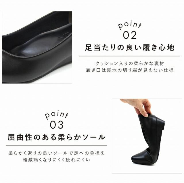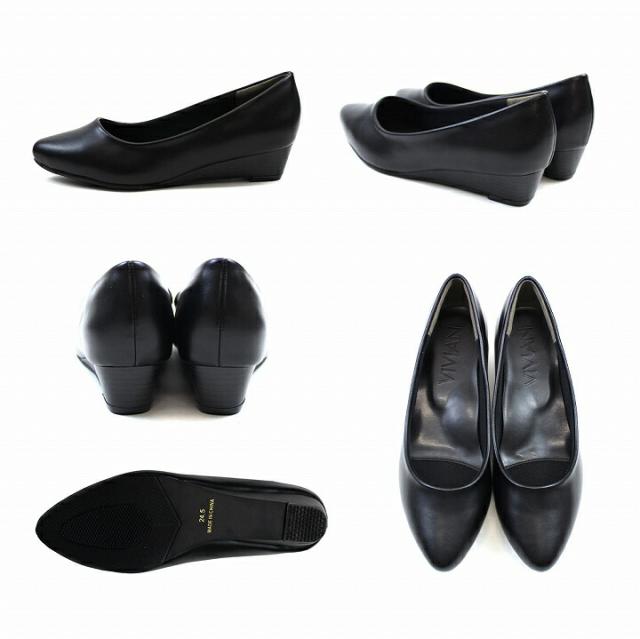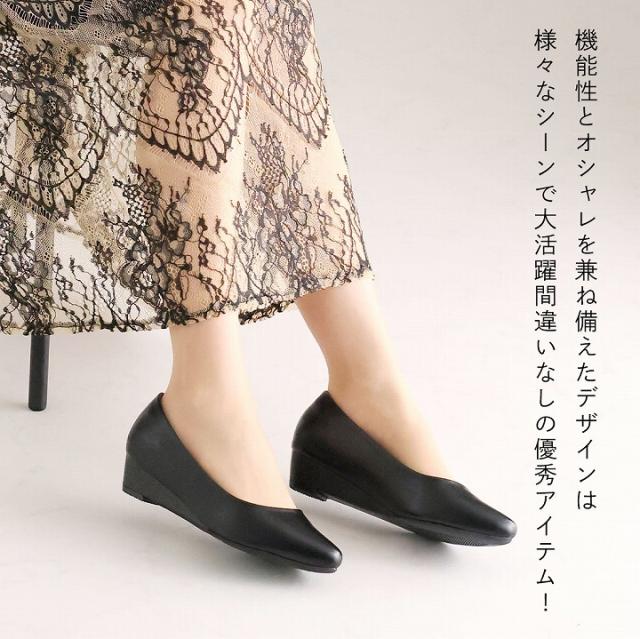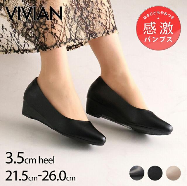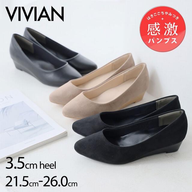 【全品10%OFFクーポン】 パンプス 痛くない 歩きやすいポインテッドトゥ ローヒール ウェッジソール 3.5cm ヒール 走れる ブラック 黒 通勤 M2540SPI VIVIAN 卒業式 ママコーデ 同窓会 冠婚葬祭
