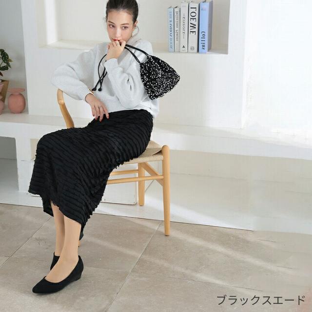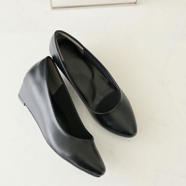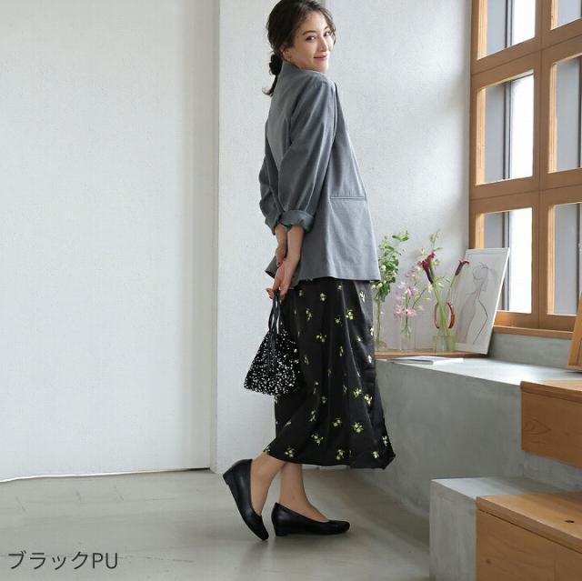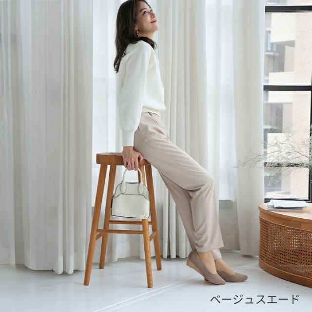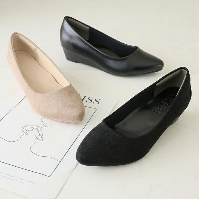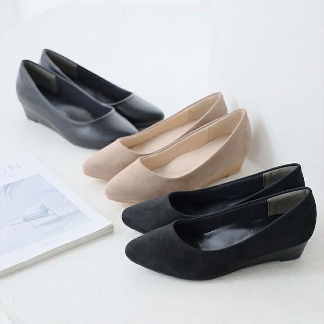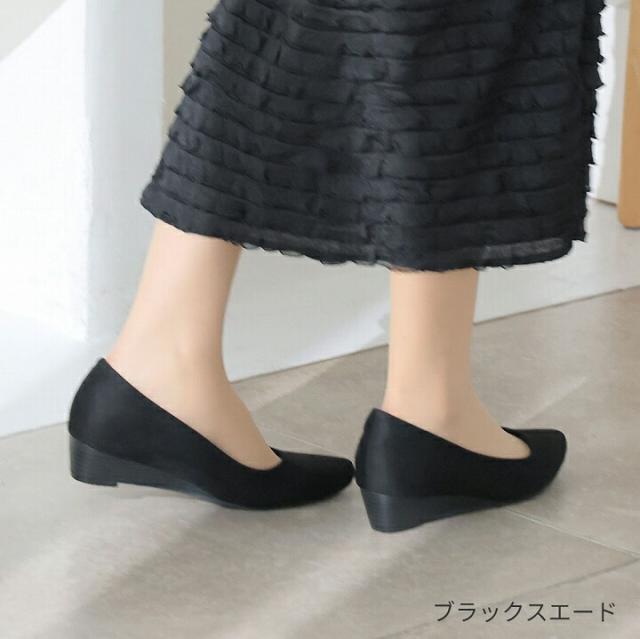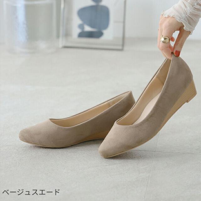 ・3.5cmローウェッジヒール×アーモンドトゥで、脚をキレイに見せてくれてスタイルアップが叶う!