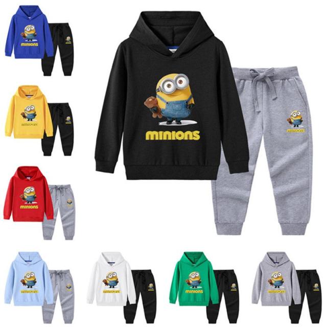 Minions ミニオンキッズ 上下セット 2点セット 長袖 トップスフード付き トレーナー 裏起毛なし パンツ 長ズボン 通学着 通園着子供服