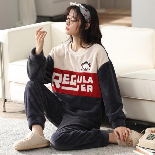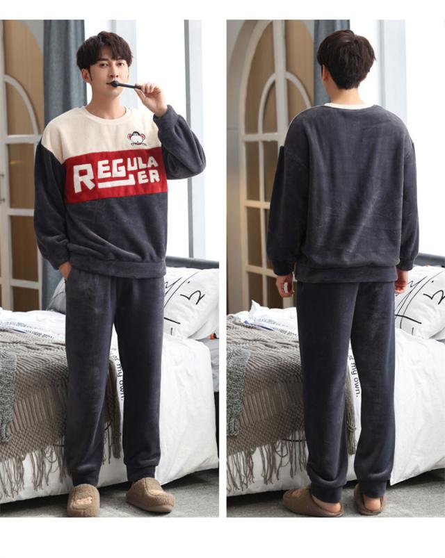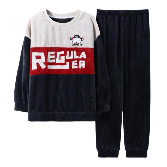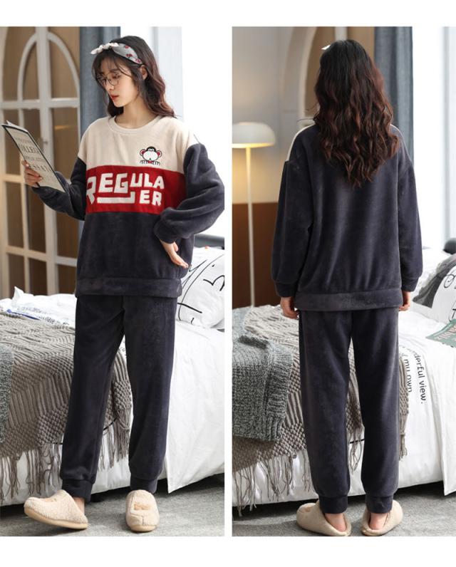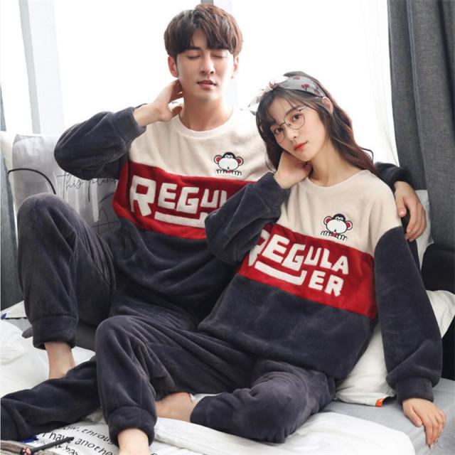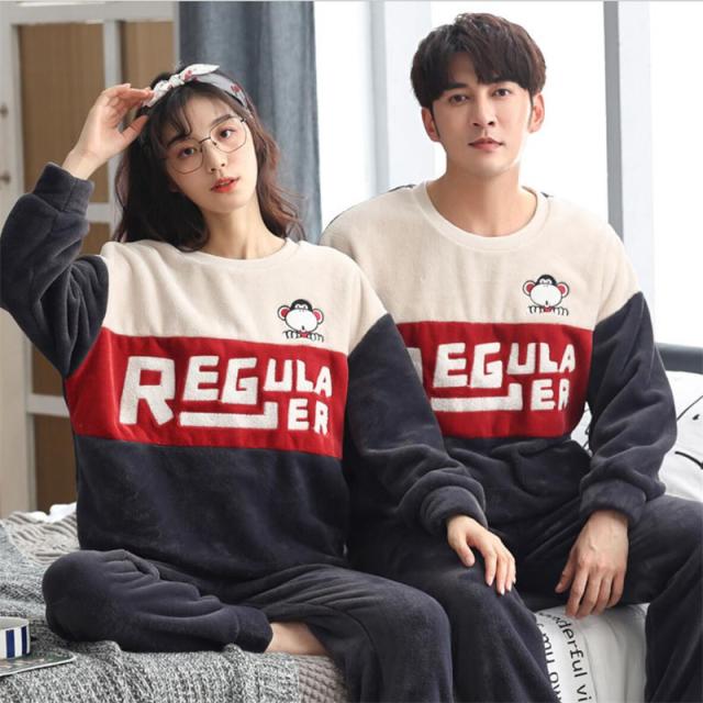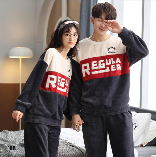 ペアパジャマ ルームウェア モコモコ シンプル パジャマ 可愛い 裏起毛 カップル 寝巻き 上下セット 寝間着 長袖保温性が高い パジャマ英字大きいサイズセットアップ厚手フランネル
