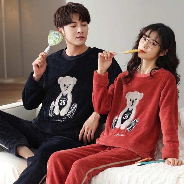 クマペアルックパジャマ もこもこ ルームウェア 男女セット ペアルック 秋冬 長袖 部屋着 レディース メンズ 寝間着 モコモコ カップル お揃い 結婚祝い 高品質