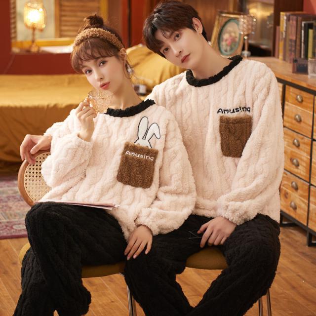 ★暖かくて気持ちいい長袖カップルペアルックパジャマです