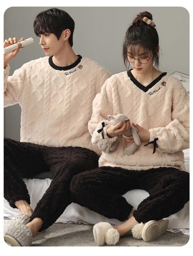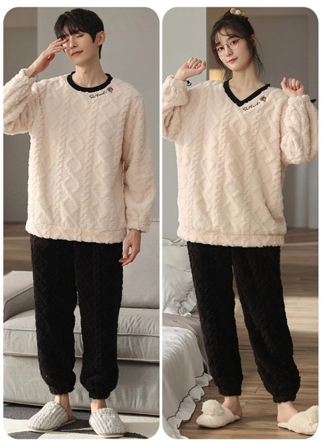 ペアパジャマ ルームウェア モコモコ ペアルック カップル パジャマ レデイース メンズ 寝巻き 上下セット お揃い パジャマ スウェット 厚手 冬