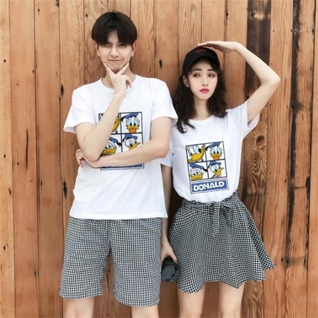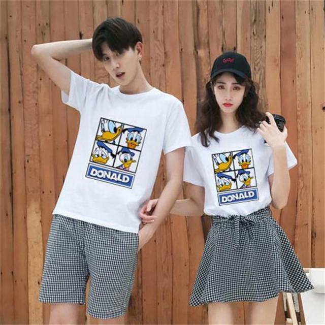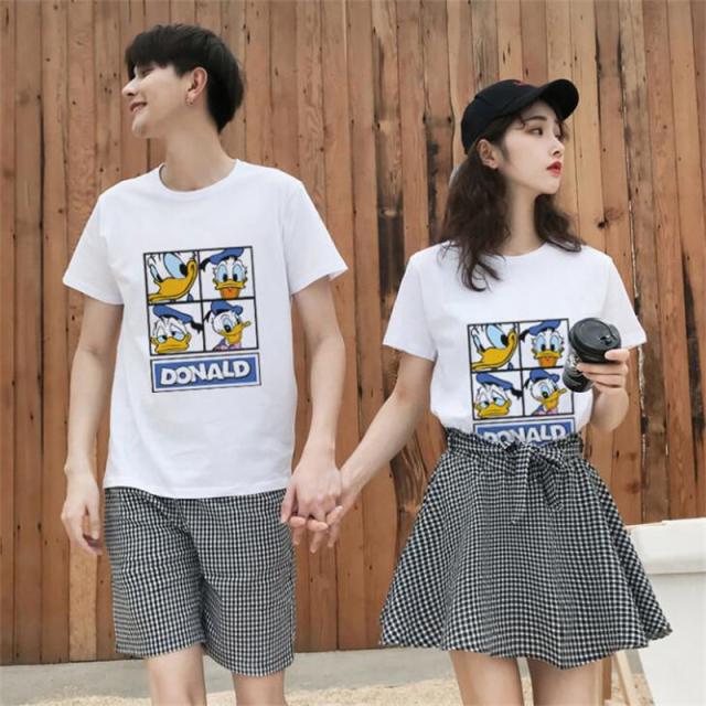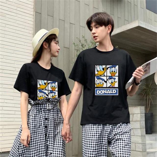 Duck ディズニー Tシャツ Disney ペアルック カップル ドナルドダック 半袖 tシャツ トップス カジュアル 恋人 お揃い T-shirt